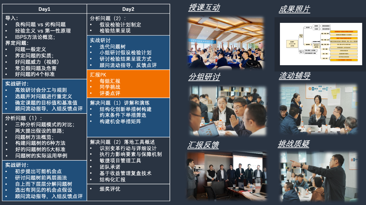 适用场景包括:各层级管理者领导力培养、行动学习项目、绩效改进项目、目标差距分析与策略制定、各领域骨干精英(如:营销、研发、HR、财务BP等)系统思维和实战能力提升。