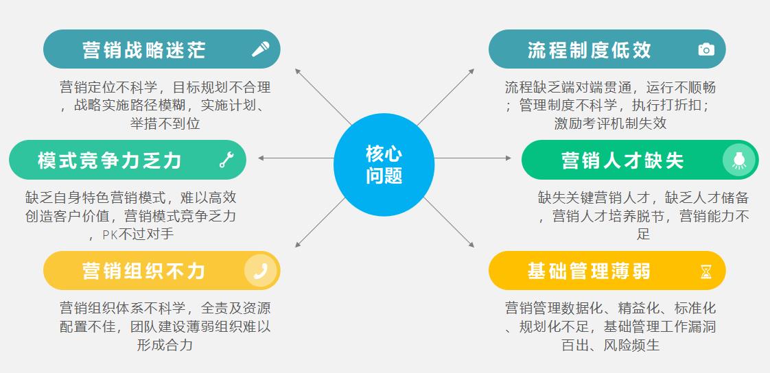 营销定位不科学,目标规划不合理,战略实施路径模糊,实施计划、举措不到位……